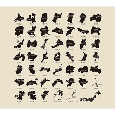 日本地図での位置や大きさがわからないと、意外と正解が難しい都道府県のシルエット。